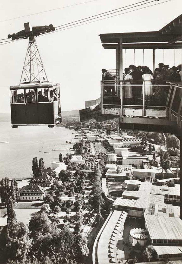 Seilbahn verbindet das linke und rechte Seeufer. Die 900 Meter lange Konstruktion wurde im Jahre 1939 für die Landesausstellung «Landi» erstellt und bedeutete Weltrekord. Bildquelle: Bildarchiv ETH Zürich.